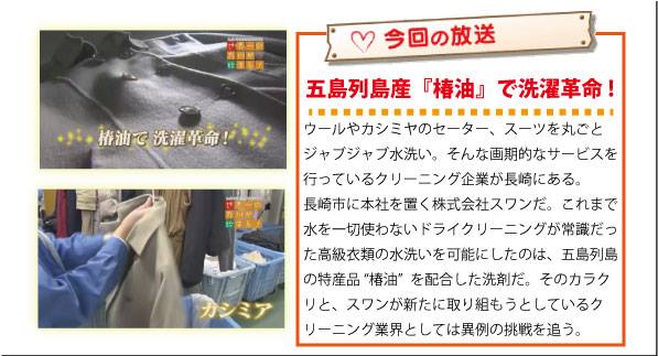 「世界一の九州が始まる」にて弊社特集です! 2018.02.25 ななななーんと!弊社で開発中である『五島列島の特産品 “椿油”を配合した洗剤』の挑戦が特集されました!■■■■■■■■■■■2月25日放送(NBC長崎放送)日曜日 午前10時15分~九州一円での放送です!(RKB NBC RKK OBS MRT MBC RBC) 戻る