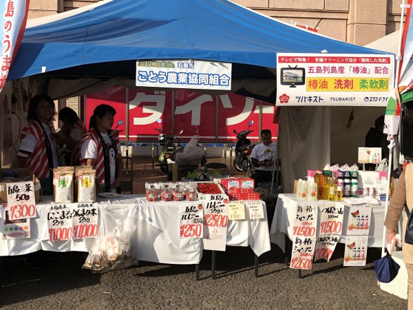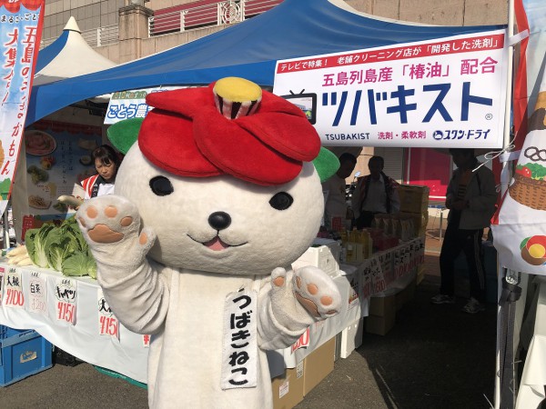 「510ごとう列島まつり」に出店です! 2018.11.11 夢彩都横のおくんち広場にJAごとうさんと、ご一緒させていただき出店いたしました!五島市のゆるきゃら「つばきねこ」に来店していただきました!「ツバキスト」をご使用されているファンの方にもお会いでき、サラサラですごく良い!との感想をいただきました!たくさんの方にお買い求めいただきありがとうごいます!平成30年11月10日~11日の出店です。 戻る